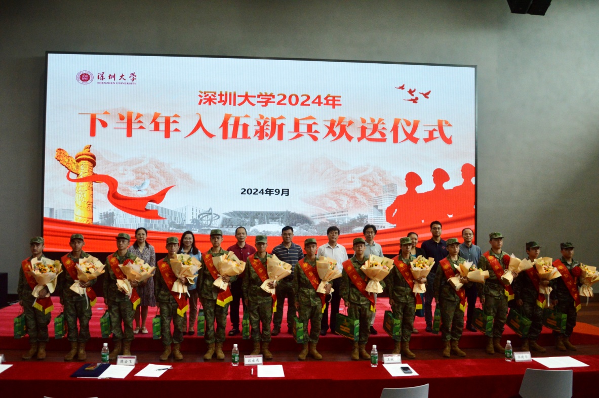 On September 14, the farewell ceremony for the recruits of Shenzhen University in the second half of 2024 was held at the Alumni Square of the Guangdong Campus. Professor Wang Yongcheng, Member of the Standing Committee of the Party Committee and Vice President of Shenzhen University, Chen Yunfei, Director of the Armed Forces Department of the Party Committee, Chen Fangming, Deputy Secretary of the Party Committee of our college, all counselors, class teachers of enlisted students, a team of veteran students, and more than 60 student representatives attended the ceremony.