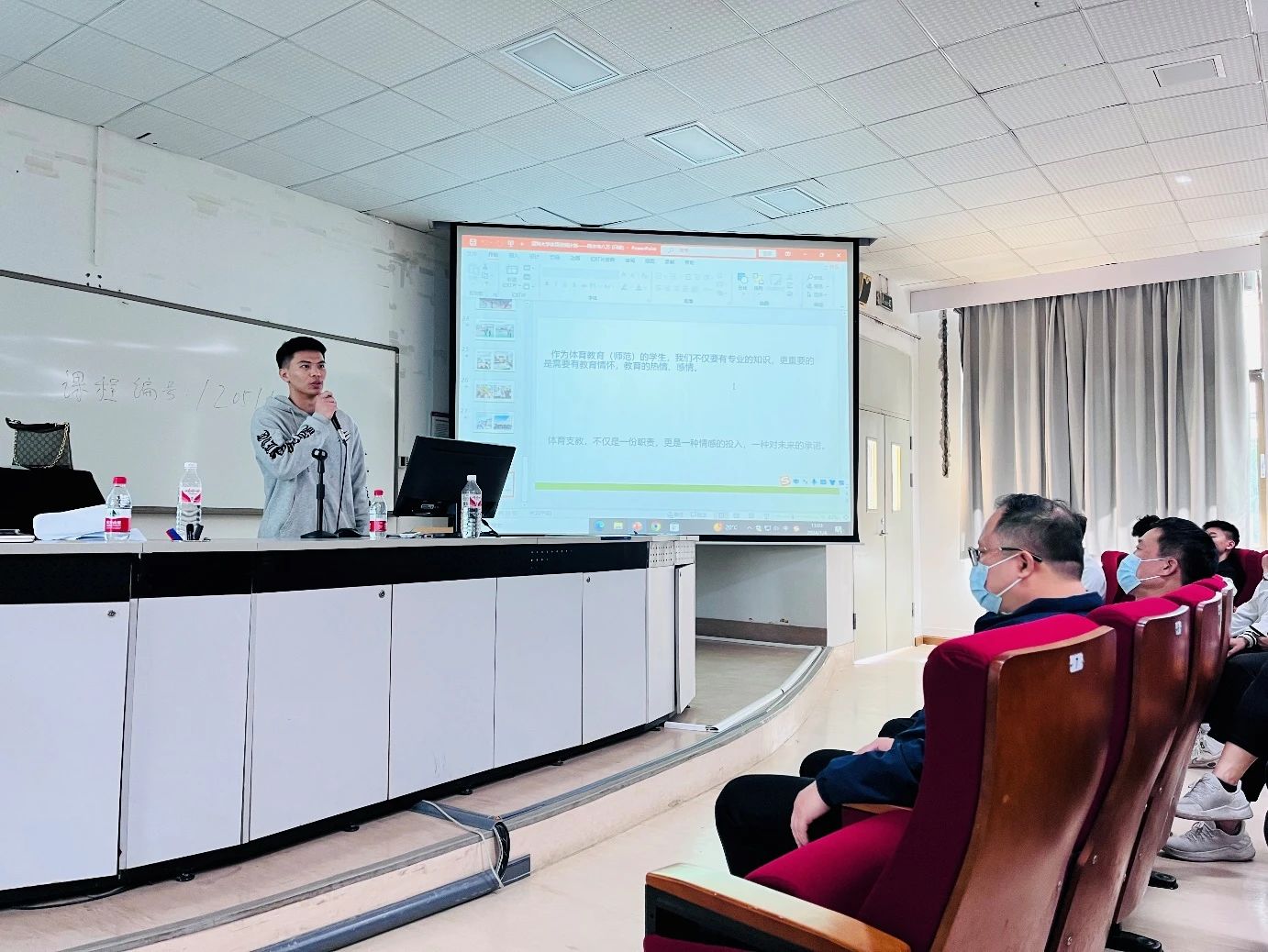 在“体育浸润计划”成果汇报之后,四名支教学生代表李汉佳、刘浩、吴声镇以及严润民同学依次向大家分享了自己在支教活动中的心得体会。李汉佳同学谈到:“通过这次支教看到了更层次的教育理念,明白了支教的意义。唤醒了自己对于教师职业的信仰。如果有机会成为人民教师,我希望大家能给学生多一些耐心,保持教师应有的道德感。教育是一个长期的过程,我们要耐心一点,静待花开。