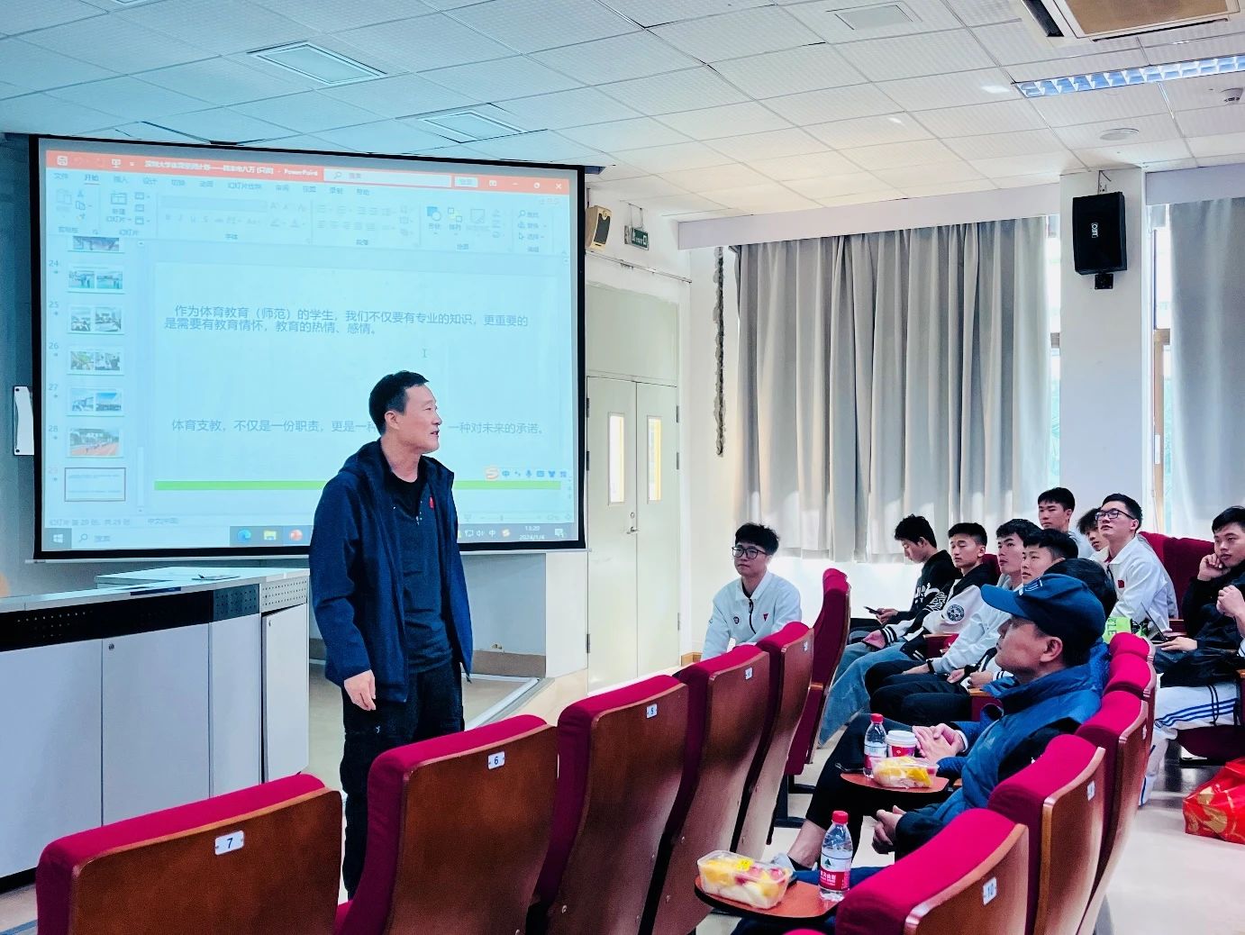 在李智军书记致辞之后,作为体育教育系“体育浸润计划”的第一负责人赵刚主任,分享了自己的心得体会。赵主任强调了教育情怀应该是每位体育教师都需要具备的最核心的东西,这次分享座谈会的初衷也是希望通过分享交流,让大家意识到教育情怀的重要性,希望通过交流产生更多的火花,对我们的教育事业作出更多的贡献。