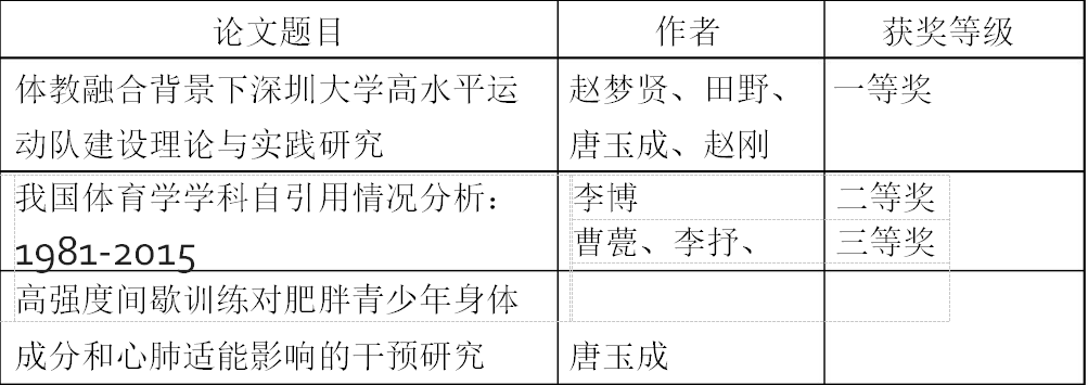 ꢀꢀ根据省教育厅《关于对广东省第十一届大学生运动会科学论文报告会论文评审结果的公示》,本届科报会共收到广东省各高校报送的论文873篇。经专家评审、查重和评审委员会确认,好色tv 报送的三篇论文分获本届科学论文报告会论文一等奖、二等奖和三等奖。