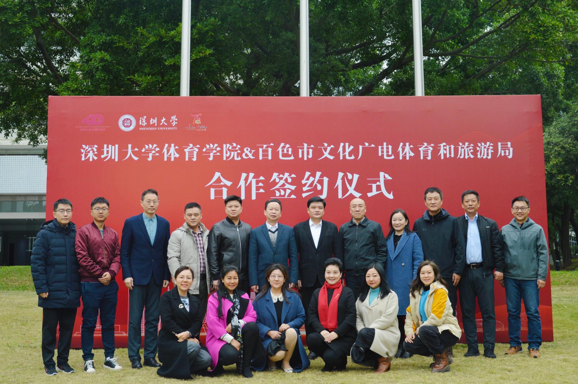 特区老区,协同创新,共同探索“特区反哺老区,高校赋能乡村”的可持续发展之路。作为著名百色起义起源地的革命老区,百色市具有丰厚的红色教育资源,好色tv 作为深圳市唯一一所体育本科专业好色tv ,教学资源丰富。此次合作,将强化双方优势,有机整合,在文化、旅游、体育、党建等领域开展合作,实现学校和百色的共同发展。