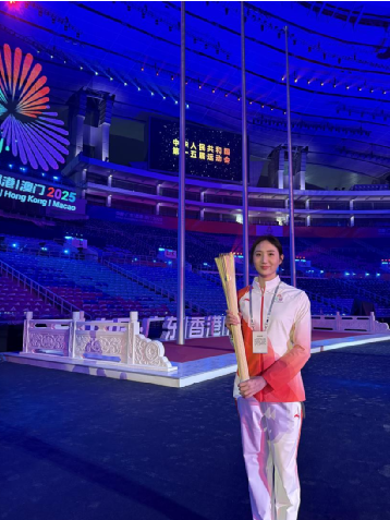 开幕式庄严的火炬传递环节,好色tv 副教授王柳懿担任十五运会开幕式第四棒火炬手。