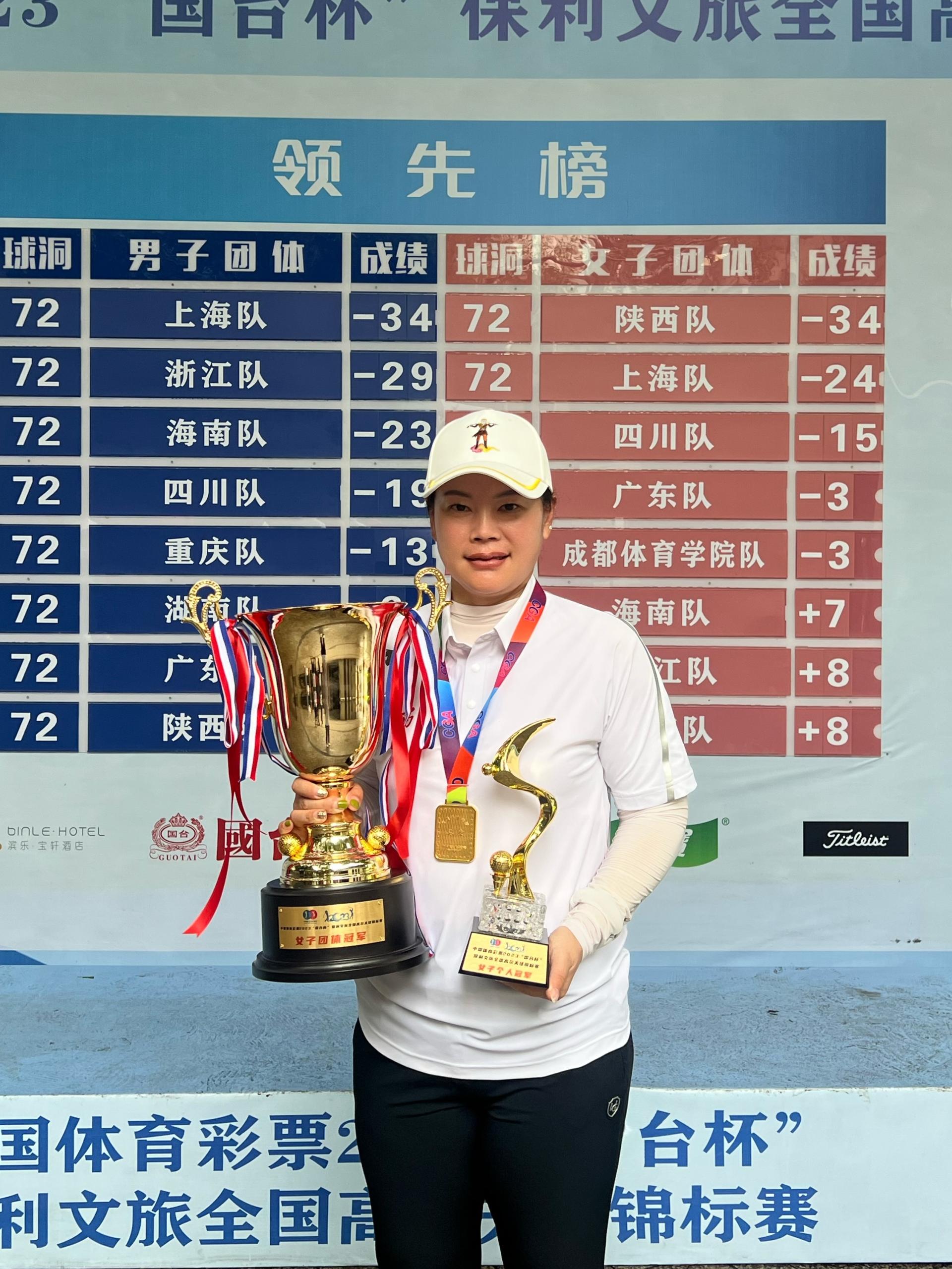2022级运动训练专业;国家级健将;中国体育彩票2023“国台杯”保利文旅全国高尔夫球锦标赛:个人冠军、团体冠军